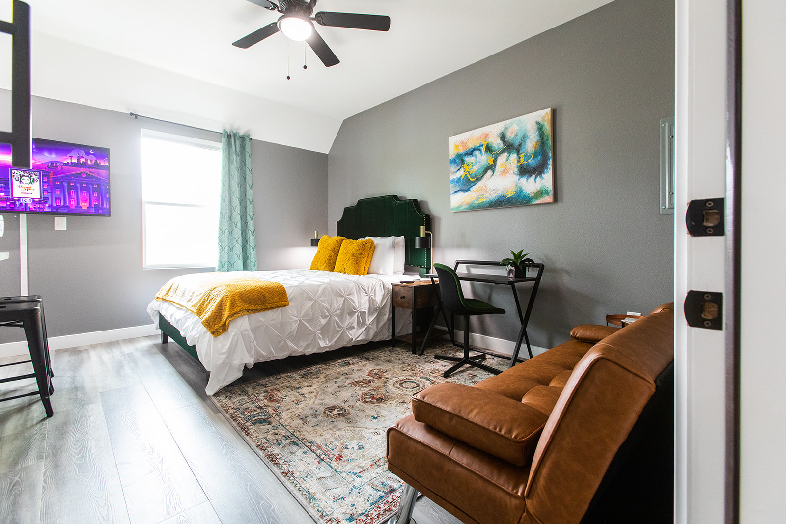 Stay in the heart of University Heights, San Diego. This urban oasis boasts high-end finishes, a fully stocked kitchen, and a dedicated workspace for remote professionals. Enjoy the convenience of fast Wi-Fi, A/C, and a community washer and dryer. This prime location immerses you in the vibrant local scene, situated steps away from trendy cafes, restaurants, and breweries. Across the street is a sprawling park and you're only 15 minutes away from the airport, beach, and local businesses.