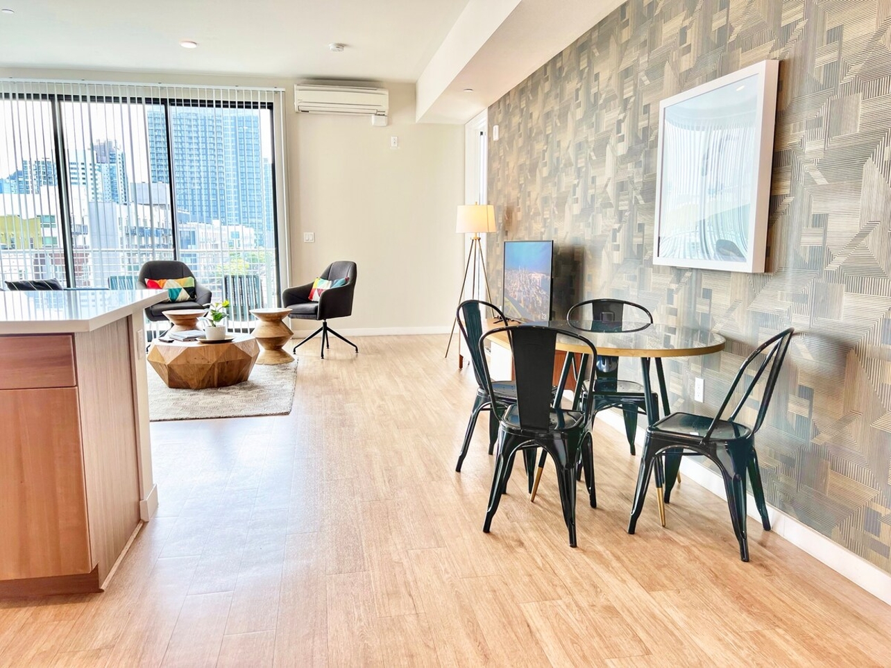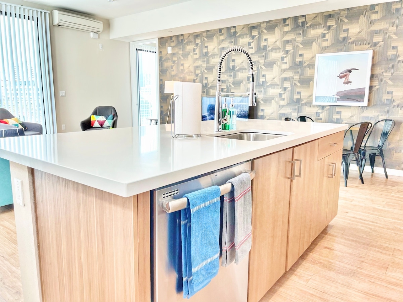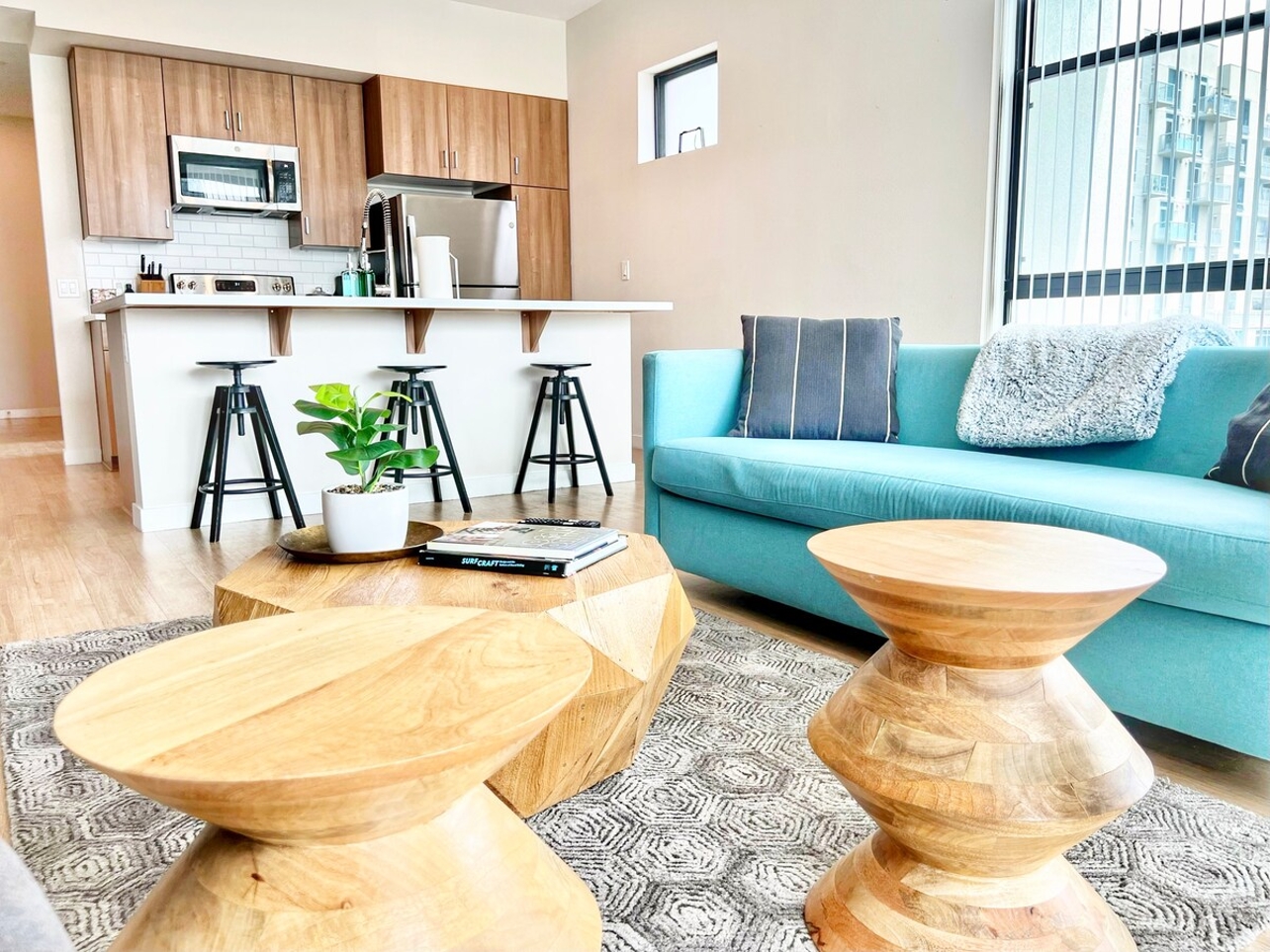 Welcome to our stunning 3-bedroom penthouse at The Leo. Breathtaking views of the city await you from our wrap-around balcony. This luxurious space features everything you need, from a fully equipped kitchen to in-suite laundry. Our prime location puts you in downtown with easy access to the freeway. Take a stroll through Seaport Village, discover beautiful beaches, and immerse yourself in the Gaslamp Quarter. Make your next trip to America's Finest City unforgettable at The Leo.