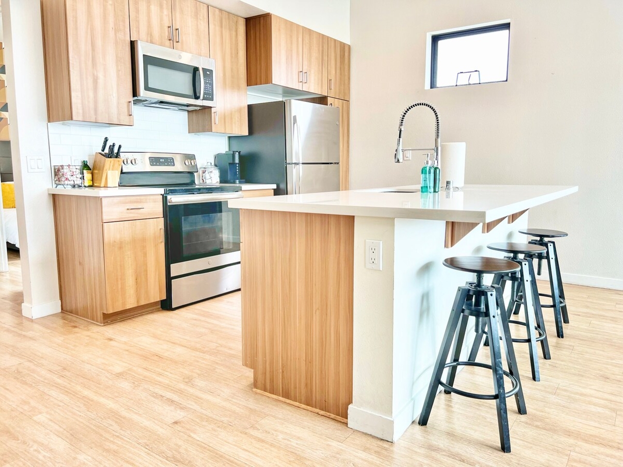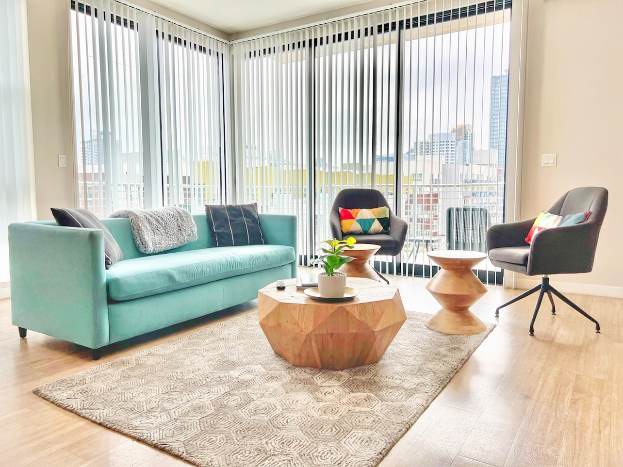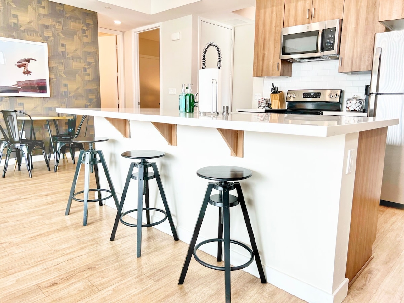 Welcome to our stunning 3-bedroom penthouse at The Leo. Breathtaking views of the city await you from our wrap-around balcony. This luxurious space features everything you need, from a fully equipped kitchen to in-suite laundry. Our prime location puts you in downtown with easy access to the freeway. Take a stroll through Seaport Village, discover beautiful beaches, and immerse yourself in the Gaslamp Quarter. Make your next trip to America's Finest City unforgettable at The Leo.